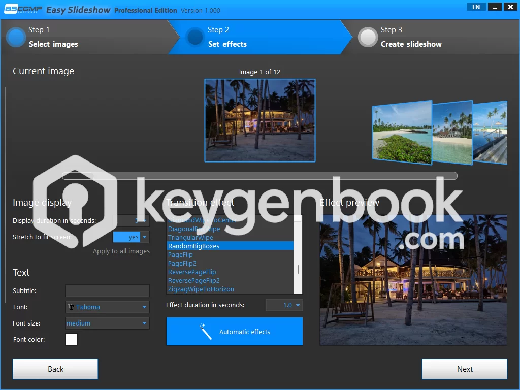The software includes over 200 effects that allow you to create stunning transitions between your photos. Whether you want a soft fade or a dynamic zoom, there’s a style for every occasion.