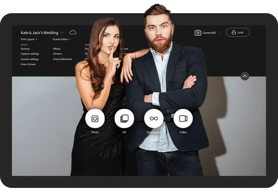 With the help of dslrBooth, you have full control over the camera to take auto photos, create multiple images, and turn them into beautiful prints.