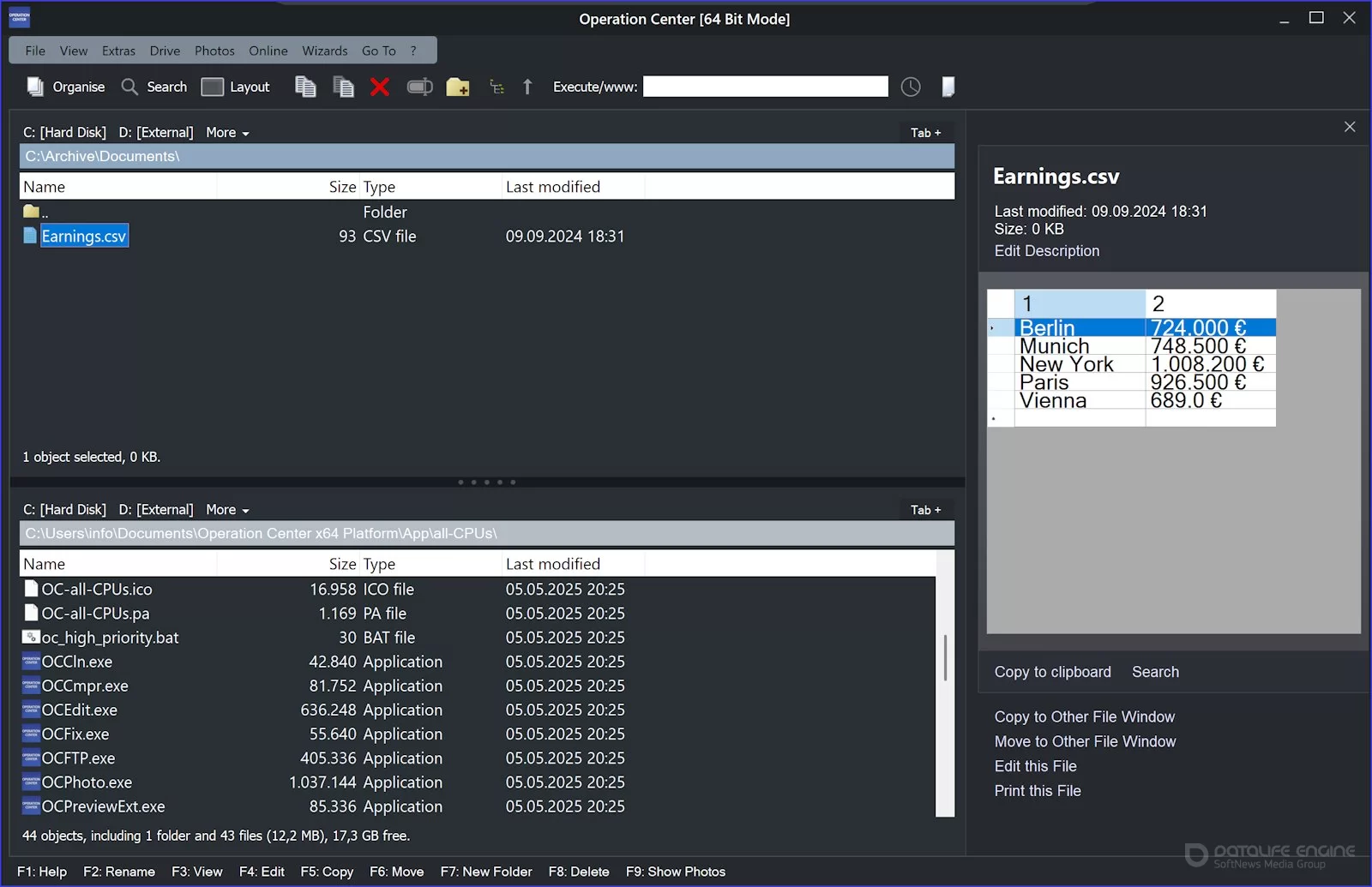 With this option, you can use two file windows at the same time, and easily copy or move files. The file can be inspected without opening it through the preview panel.